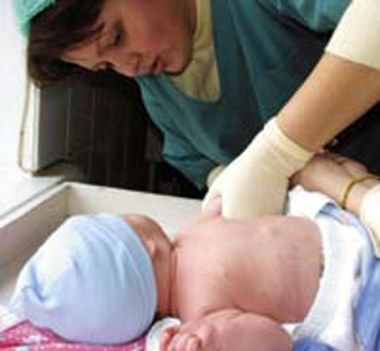 Здорового новорожденного сразу кладут на грудь матери, через 1 минуту пересекается пуповина, ребенок осматривается детским врачом (неонатологом), берутся необходимые анализы.