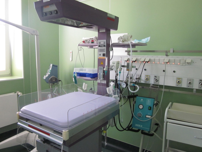 Для новорожденного оборудован неонатальный столик с источником лучистого тепла, подводкой кислорода и пр.
